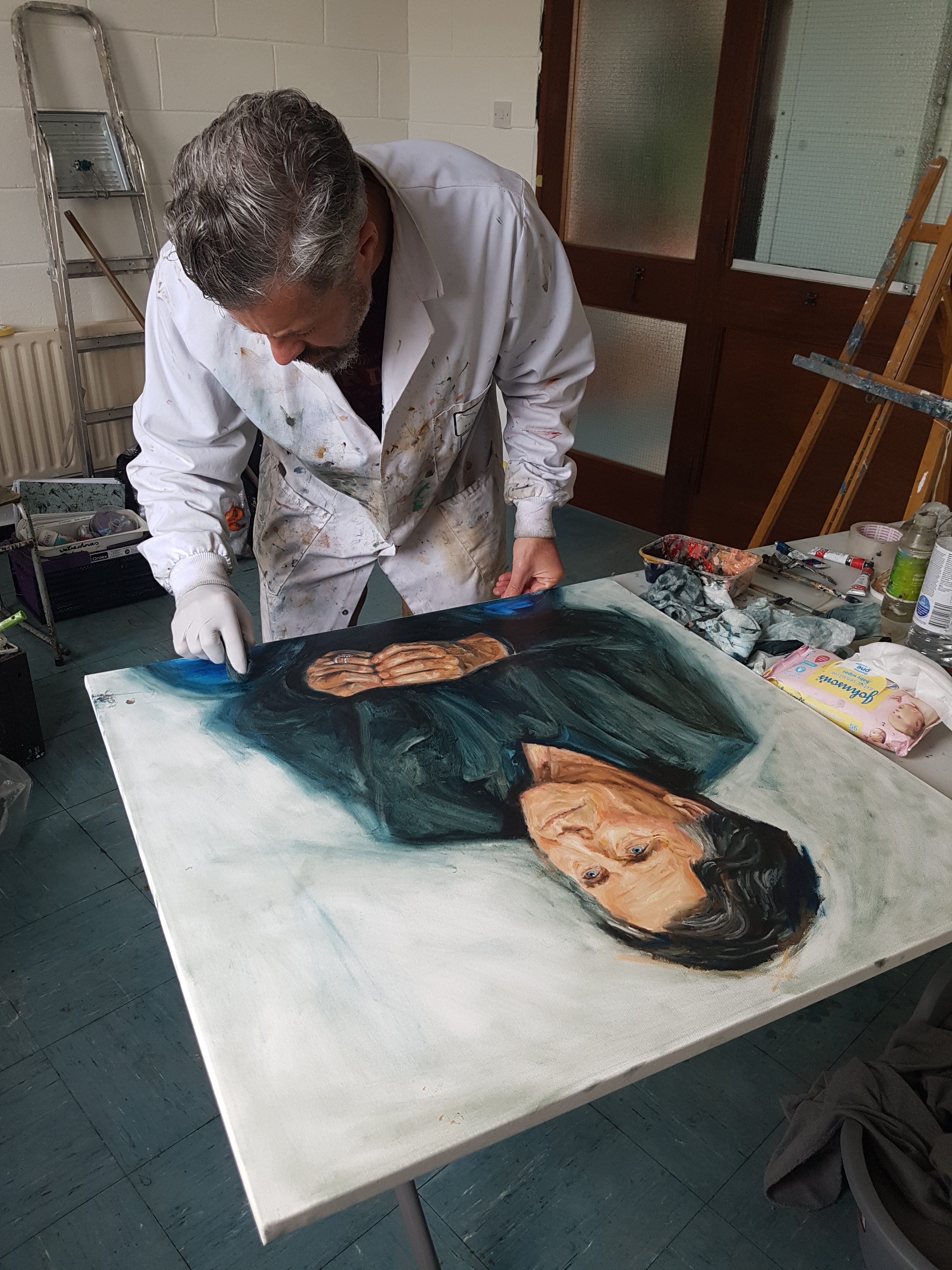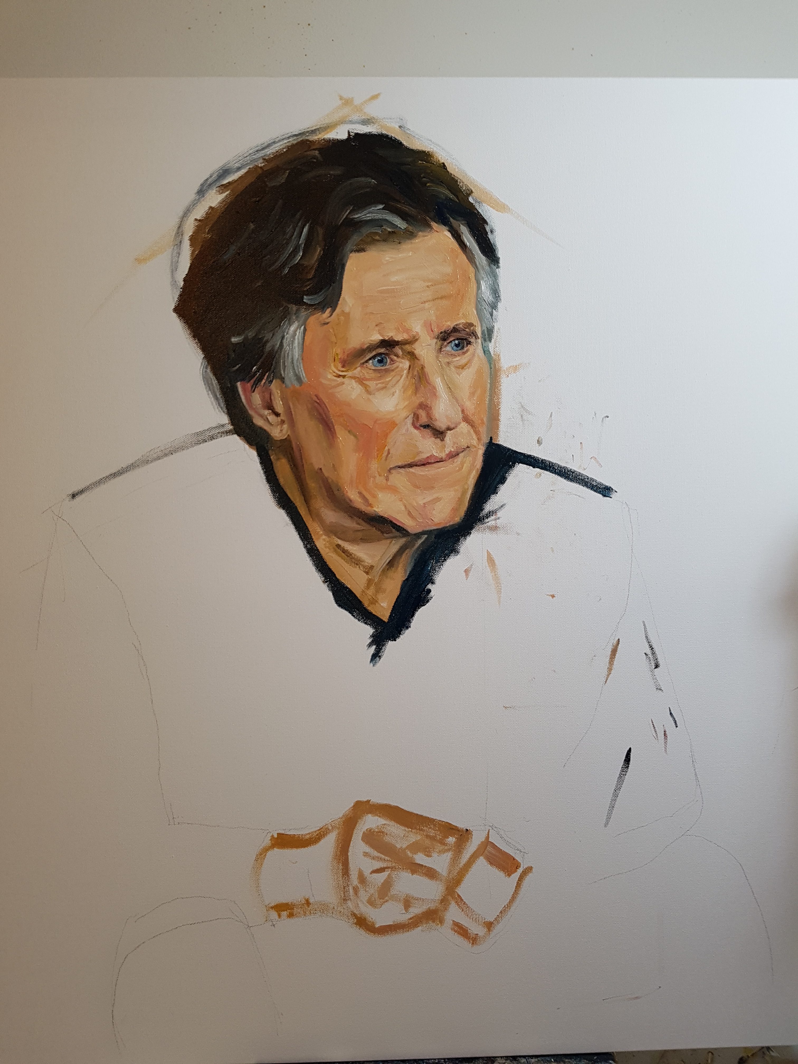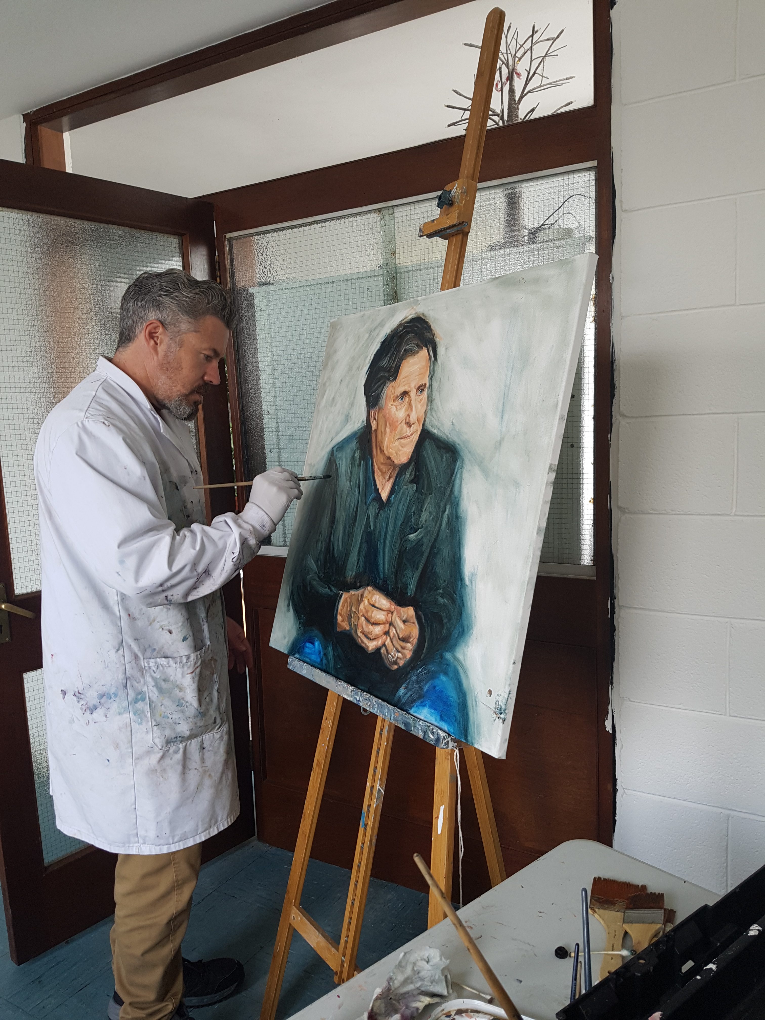 Finished portarit of Gabriel Byrne, framed and ready for shipping.